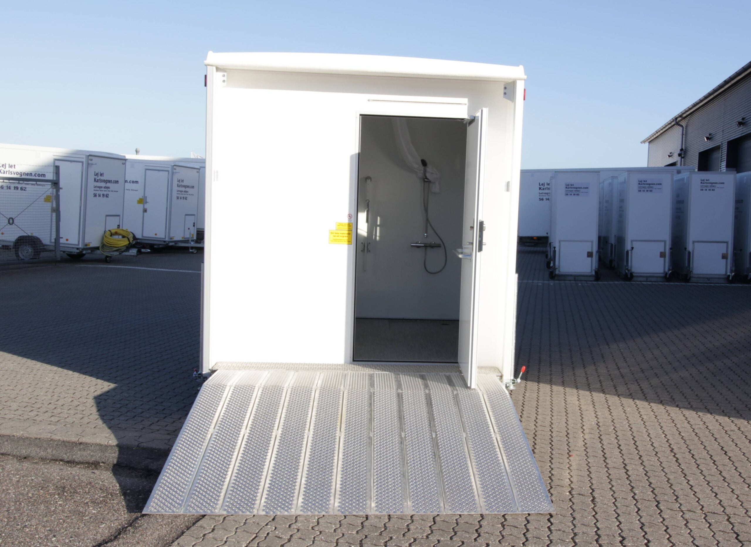 1 komplet badeværelse med rampe, vaskesøjle, vakuumtoilet. Den er 3,20 meter lang.