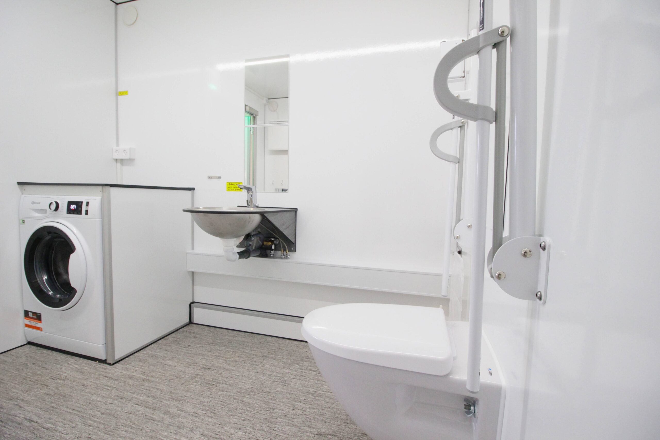 Handicap BadMobil vakuum er indrettet som et komplet badeværelse med alle nødvendige installationer.