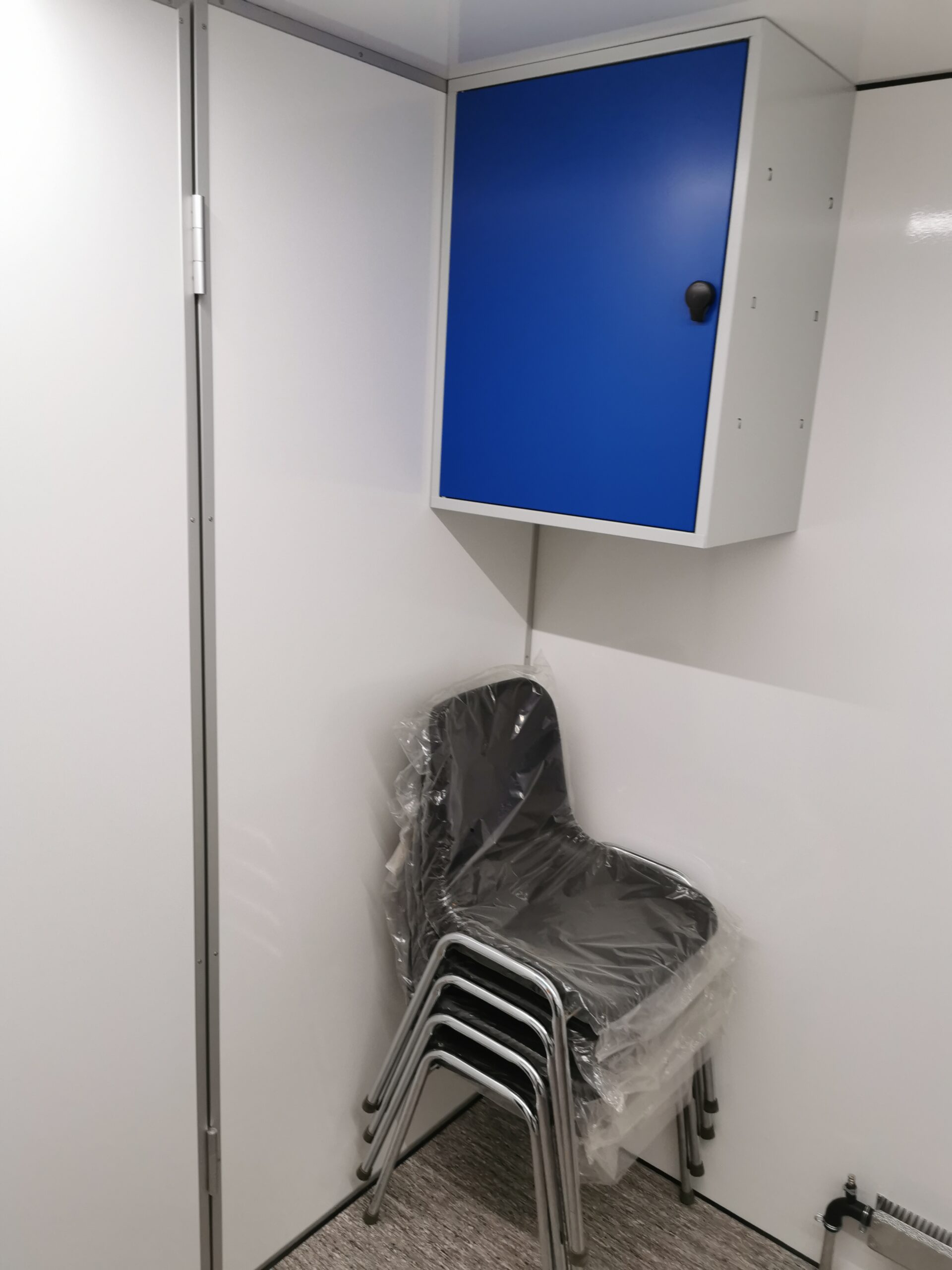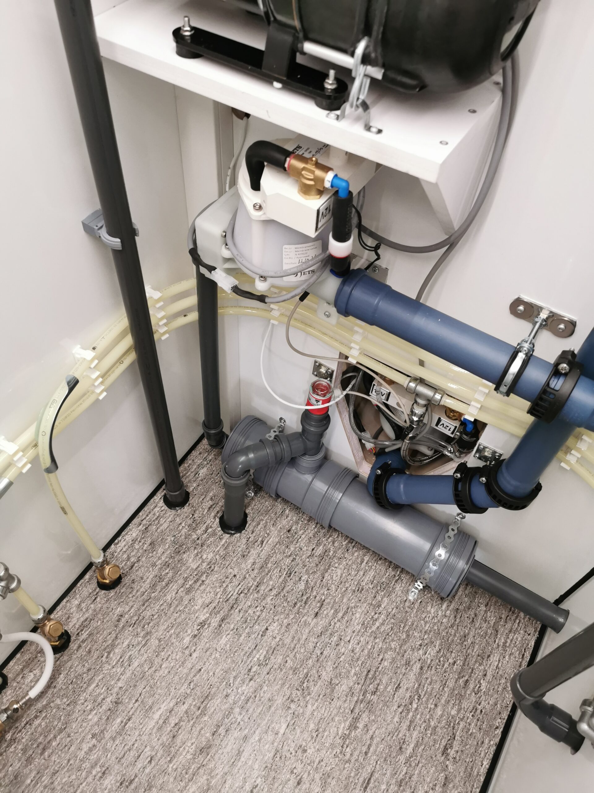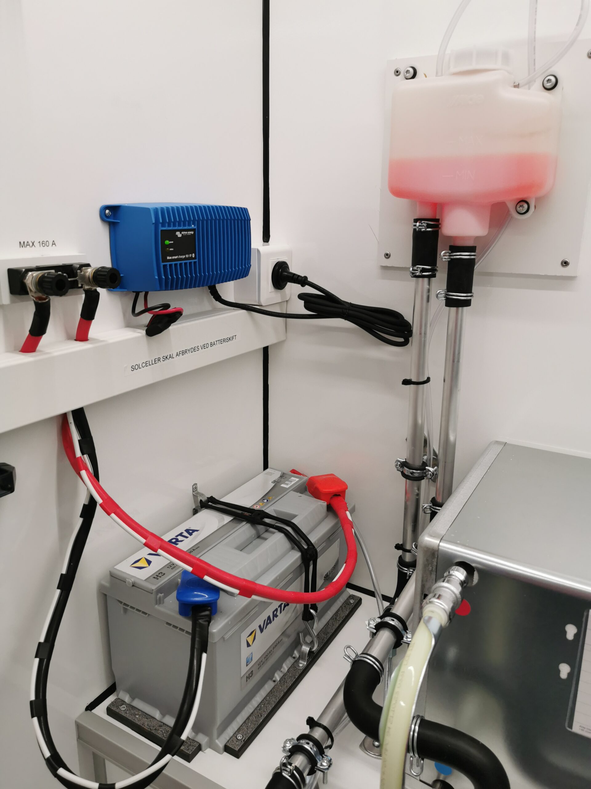 Pionervogn med solceller, batteri og gas samt tanke til vand og kloak