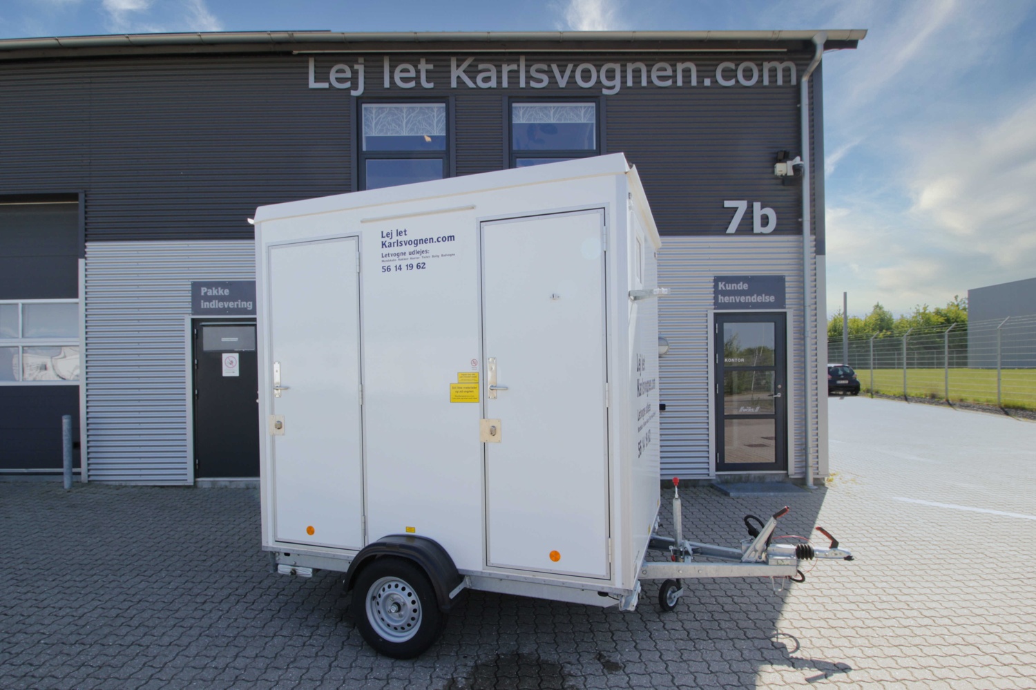 2 pers. Toiletvogn m/tanke 2 toiletter til festen eller andet event | Lejes fra torsdag til mandag. Den er 2,40 meter lang. Se pris Tag et kig ind i vognen Se mere Bestil vogn Bliv ringet op wct01_optimized-1500wct02_optimized-1500wct03_optimized-1500wct04_optimized-1500 Totalpriser for leje torsdag til mandag. Leje priserEx. moms (skift til inkl. moms) Hvis du selv henter vognen.Kr.4.265,36 Hvis du selv henter vognen, - med startpakke.Kr.4.463,36 Med levering, opsætning, nedtagning og afhentning.Kr.7.861,36 Med levering, opsætning, nedtagning og afhentning, - med startpakke.Kr.8.059,36 Alle priser er inkl. forsikring, miljøafgift og slutrengøring. Bestil Vogn Bestil vogn fra Karlsvognen Vælg kundetypePrivatErhvervOffentlig Forventet lejeperiode i mdr.* Udfyld venligst dato for ønsket lejestart* Accepter venligst at du har set vores handelsbetingelser Kabinerne indeholder: Toilet med skyl vha. fodpumpe Håndvask Indgangstrapper Kapacitet: ca. 400 besøg Startpakke kan tilkøbe. Den indeholder toiletpapir, madamepose, håndsæbe og håndklædepapir. Info: Mål: H: 2,85 m B: 1,85 m L: 2,40 m Totallængde m. træk: 3,6 m Totalbrede m. skærmkanter: 2,25 m Egenvægt: 600 kg. Totalvægt: 750 kg Kræver ikke tilslutning til hverken vand, kloak eller strøm. Kunne du tænke dig at høre mere?Så lad os ringe dig op! Klik her for opringning Bestil opringning fra Karlsvognen Accepter venligst at vi må gemme dine data i forbindelse med opkaldet