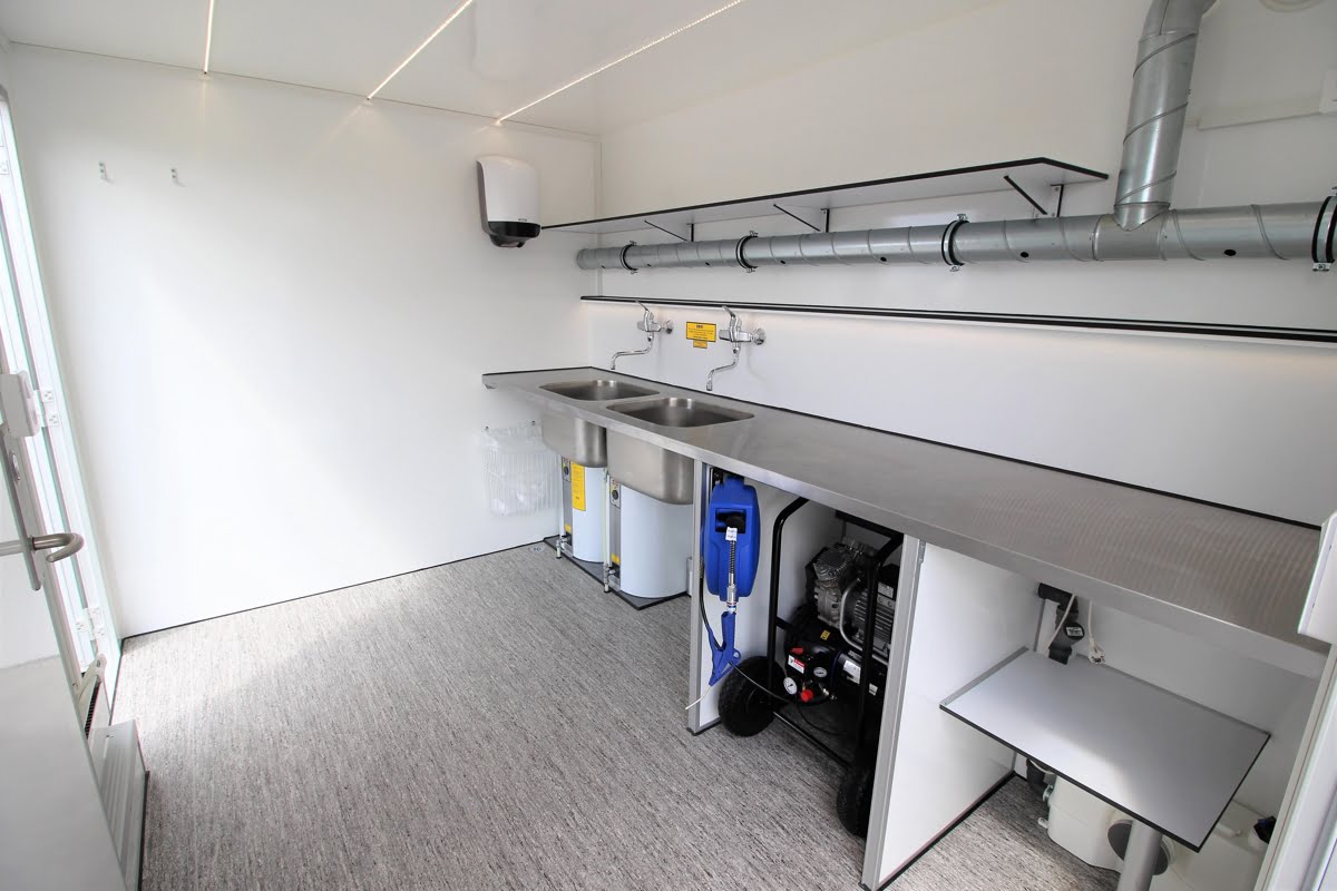 Vognen er indrettet med to store og dybe vaske med god udsugning og et trykluftsanlæg med 20 meter luftslange. For let adgang med indbo og løsøre er vognen udstyret med en ekstra bred åbning med tilgang via en skridsikker rampe.